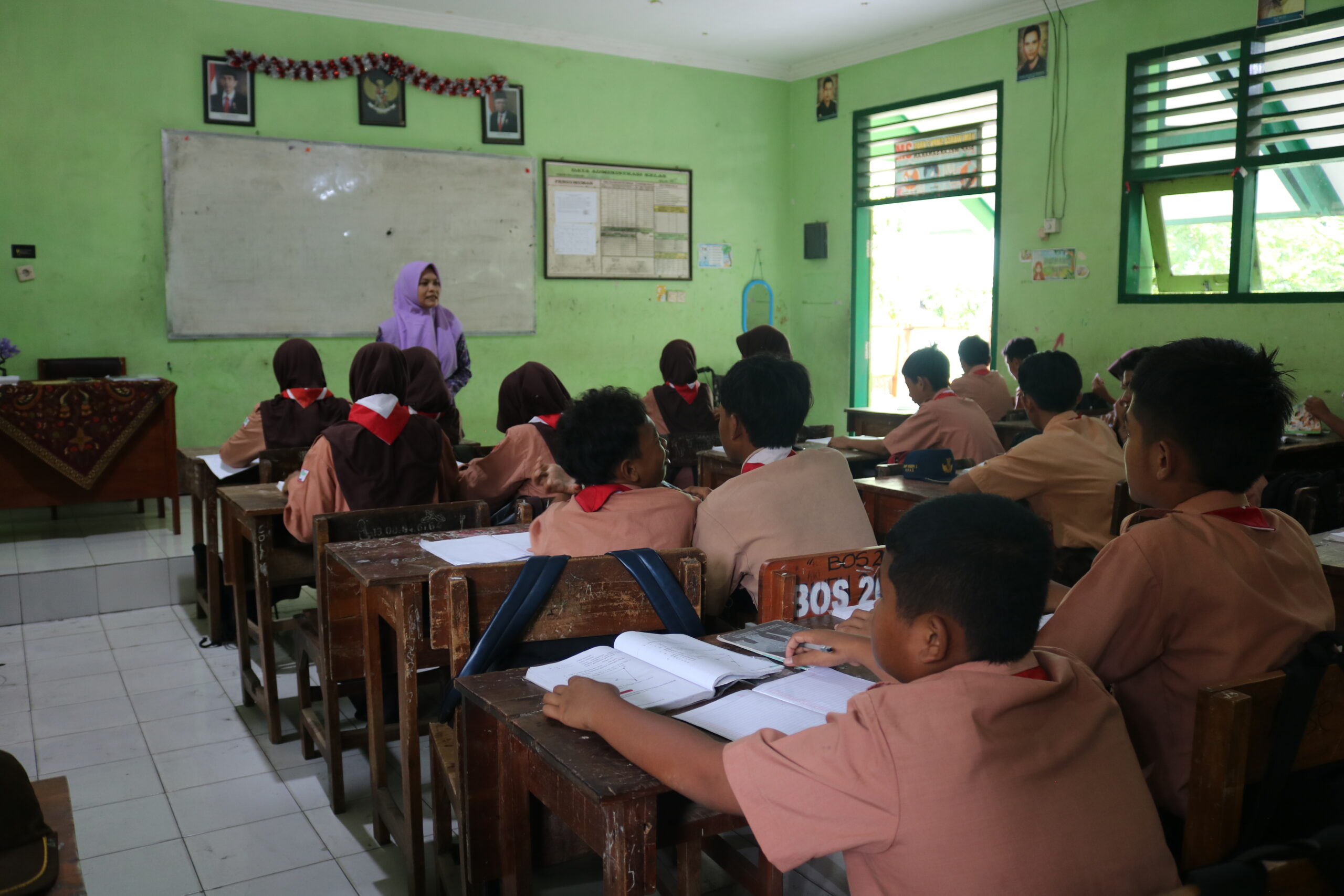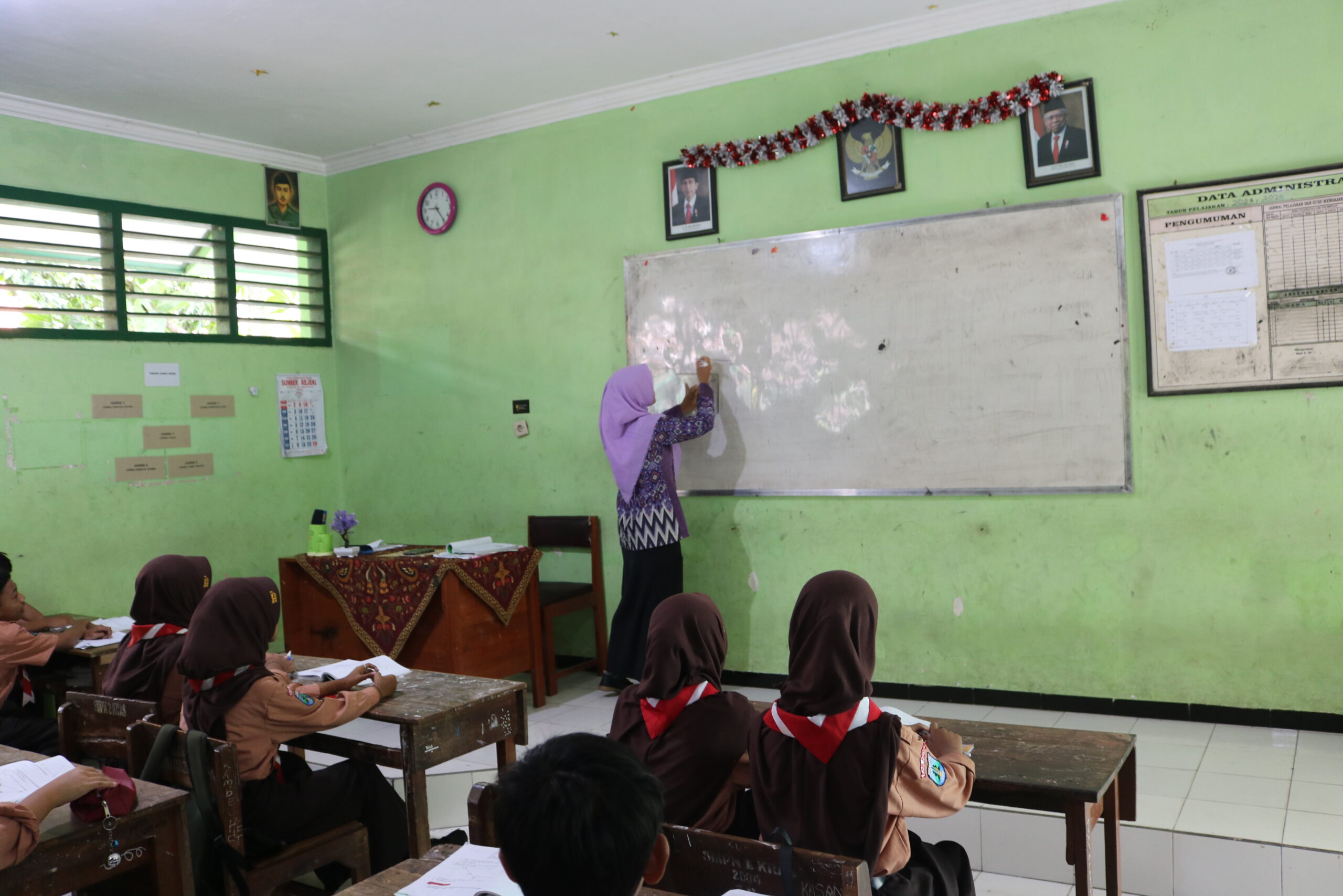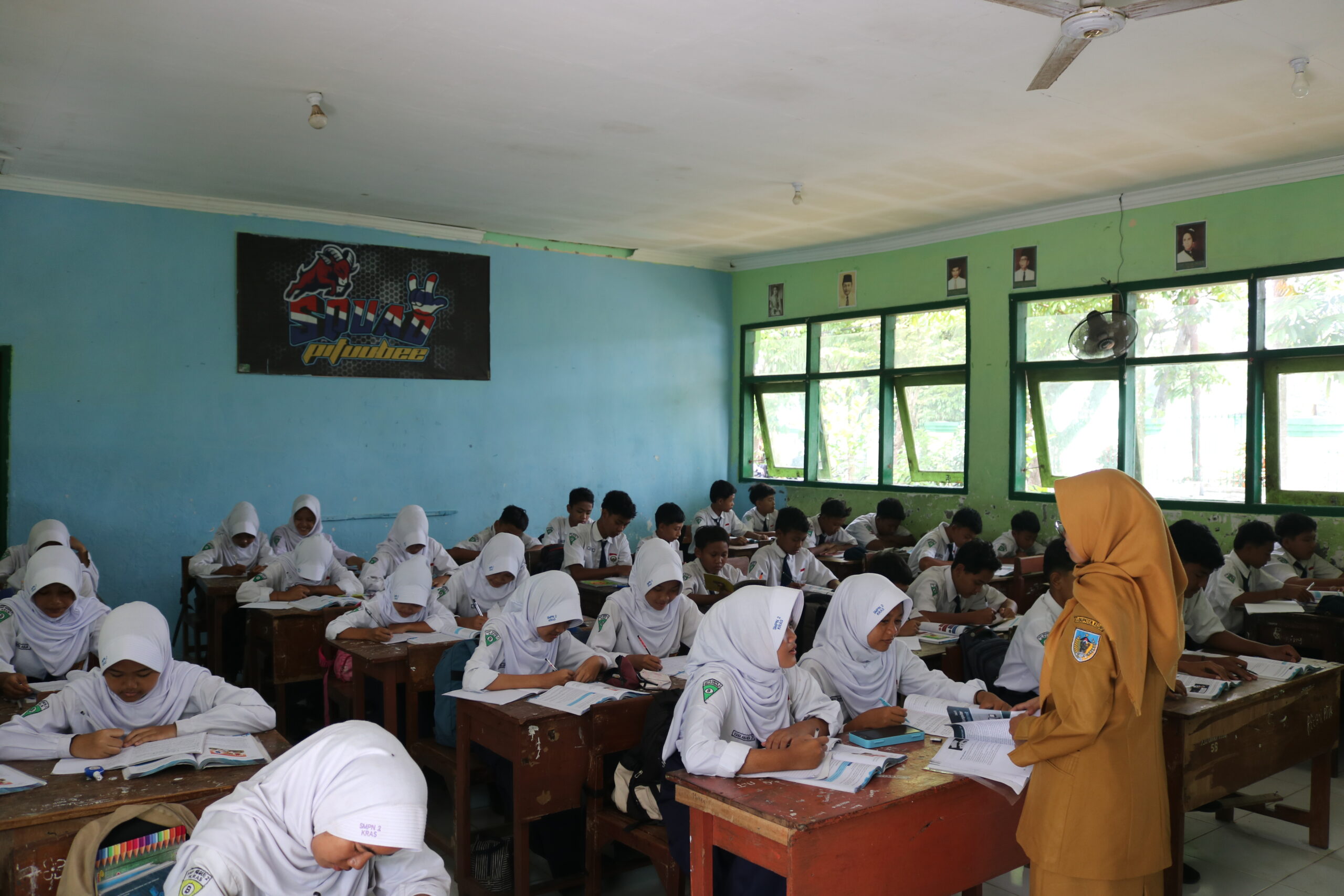 Ruang kelas di SMPN 2 Kras bukan sekadar tempat berjejer meja dan kursi. Di sinilah denyut nadi pendidikan berdetak, tempat para siswa menjelajahi luasnya ilmu pengetahuan dan mengasah keterampilan. Ruang kelas menjadi panggung interaksi dinamis antara guru dan siswa, di mana ide-ide cemerlang dilontarkan, diskusi hangat terjalin, dan kolaborasi tim terbentuk. Setiap sudut ruang kelas menyimpan potensi untuk menumbuhkan rasa ingin tahu, memicu kreativitas, dan membangun karakter siswa.